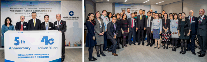 CCB London held a reception for celebrating CCBL's 5th Anniversary & 40 trillion RMB Clearing milestone, around 100 guests from both the UK and China attended the event at 111 OBS.